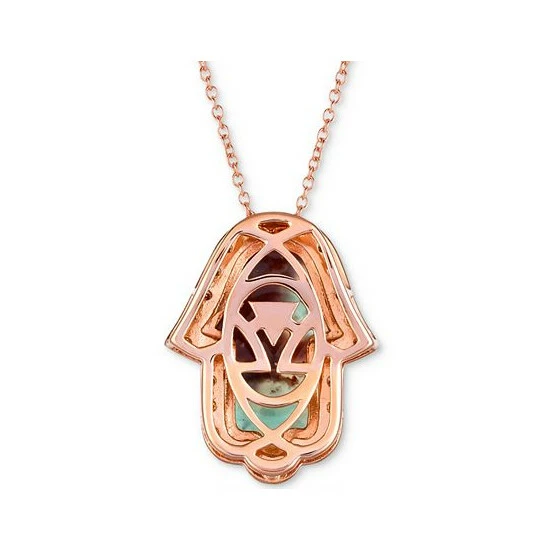 The glossy sheen of Aquaprase Candy is highlighted by a frame of Nude Diamonds™ in this Le Vian hamsa hand pendant necklace.