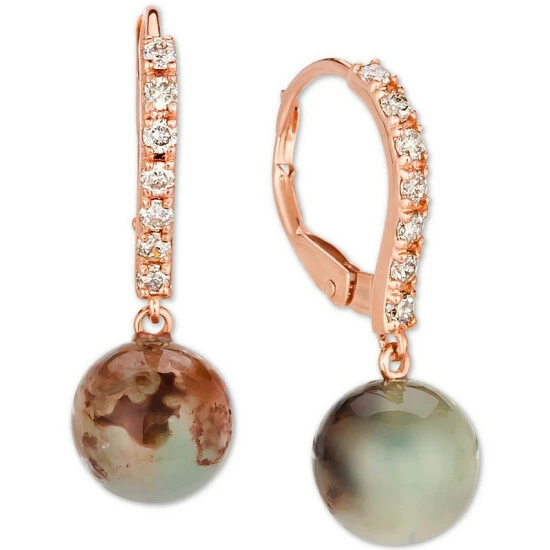 Dramatic aquaprase beads are accented with Nude Diamonds™ on these Le Vian leverback drop earrings.