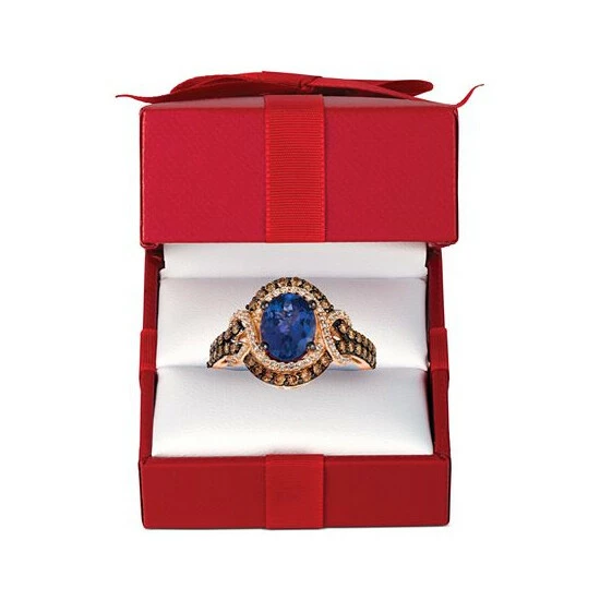 Unfathomable elegance. An enchanting oval-cut Blueberry Tanzanite® sits nestled amidst an overlapping design of Nude Diamonds™ and Chocolate Diamonds® in this striking Le Vian statement ring.