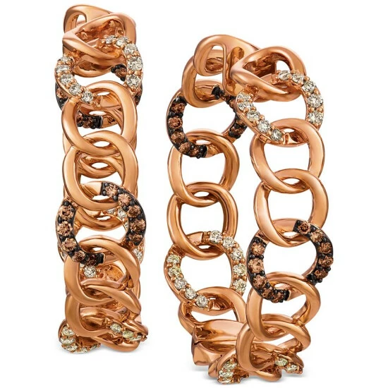 Le Vian elevates your look with these chain link hoop earrings interspersed with random links of Chocolate Diamonds® and Nude Diamonds™ in 14k rose gold.