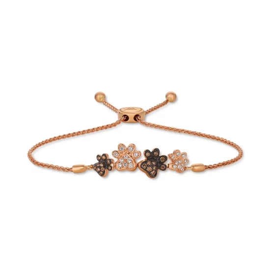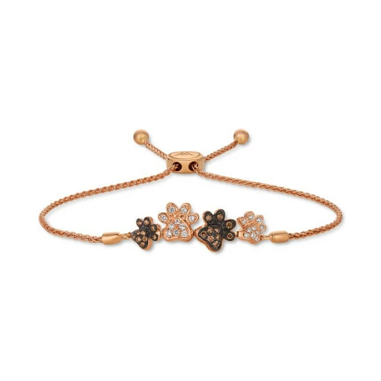 Celebrate your love of furry faces with this adorable pawprint bolo bracelet, designed by Le Vian, and set with Chocolate Diamonds® and Vanilla Diamonds® in rose gold.
