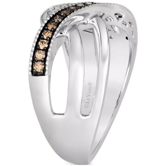 Cross your heart and hope to shine, in this beautiful Le Vian crossover statement ring, set with Chocolate Diamondsยฎ and Nude Diamondsโข in gleaming white gold.