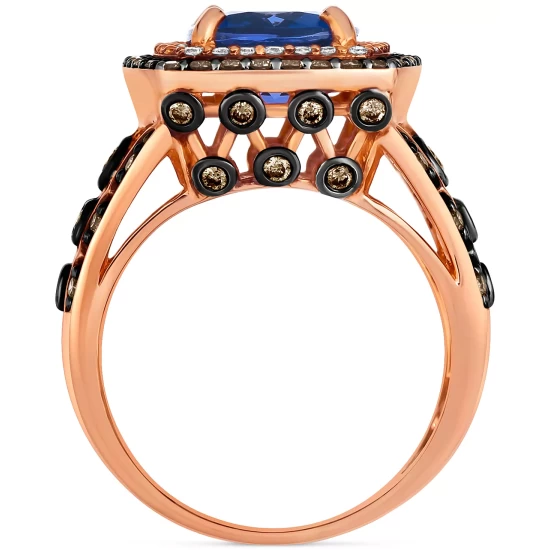 Make a bold and beautiful statement with this stunning Le Vian ring, set with a large Blueberry Tanzanite® in an openwork ring design accented with Vanilla Diamonds® and Chocolate Diamonds® in 14k rose gold.
