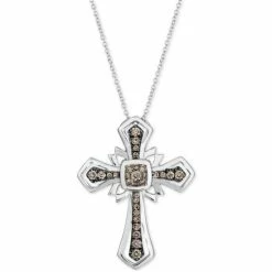 Beautiful Chocolate Diamonds® grace this beautiful white gold cross pendant necklace from Le Vian.