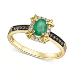 The warm harvest tones of an oval-shape Cinnamon Citrine® are enhance by the sparkle of round-shape white and chocolate diamonds in this unique and lovely Le Vian Ring.