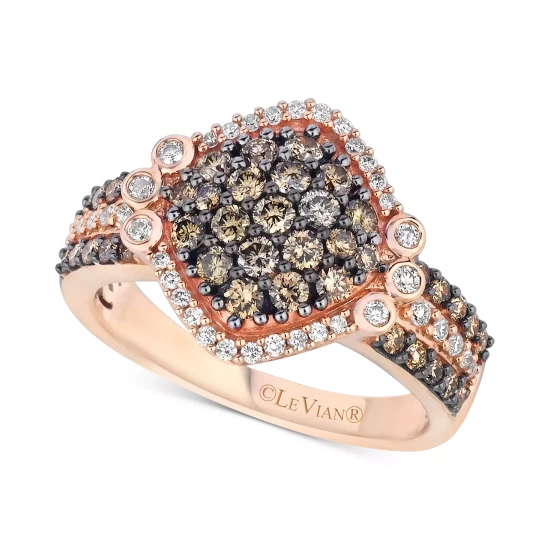 Fiery rose gold adds to the amazing shine of this stunning round-shape white and brown diamond pavé ring (1-1/8 ct. t.w.) from Le Vian.