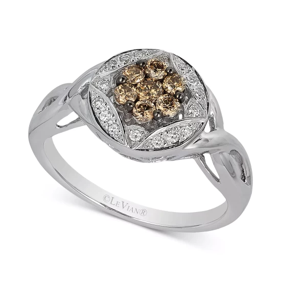 A delicate balance of round-shape white and brown diamonds creates harmonious sparkle in this Le Vian cluster ring (1/3 ct. t.w.) set on an openwork braided band.