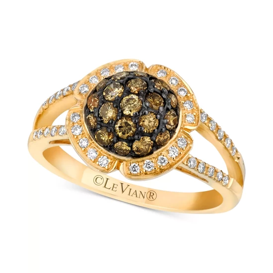 Floral-inspired, this elegant ring (3/4 ct. t.w.) from Le Vian is set with beautiful round-shape white and brown diamonds in a delicate openwork gold frame.