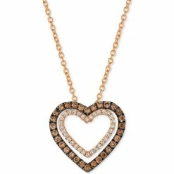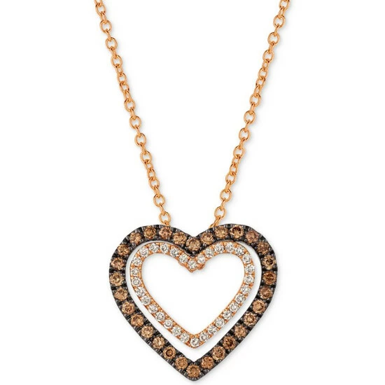 The rich deliciousness of chocolate is wrapped into an elegant heart in this round-shape chocolate and white diamond pendant necklace (1/3 ct. t.w.) from Le Vian in 14k rose gold. Lobster clasp. Approximate length: 18″. Approximate drop: 1/2″.