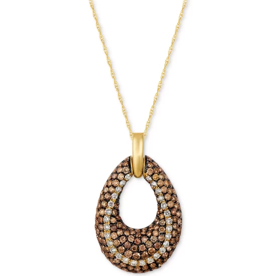 Take in the breathtaking beauty of this open teardrop pendant necklace (1-9/10 ct. t.w.) from Le Vian, expertly set with shimmering round-shape white and chocolate diamonds in ultra-luxurious 14k gold.