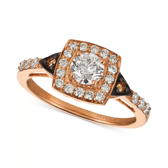 A sparkling square halo surrounds a stunning center stone in this unique round-shape white and chocolate diamond ring (7/8 ct. t.w.) created by Le Vian® in 14k rose gold
