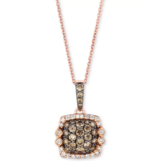 Beauty without boundaries, Le Vian revs up the glam with this stunning round-shape white and brown diamond square cluster pendant necklace in elegant rose gold.