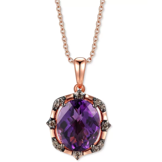 Elegant Chocolate Diamonds® enhance the beauty of an oval-cut Grape Amethyst™ on this Le Vian rose gold pendant necklace.