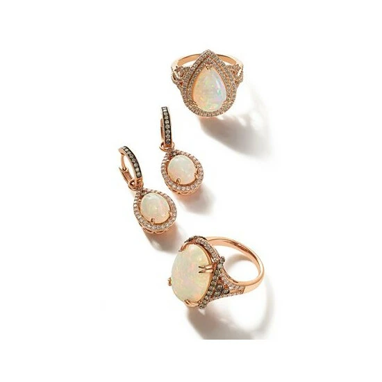 Le Vian® celebrates the extraordinary beauty of two oval-shape Neopolitan Opals™ (2-3/8 ct. t.w.) by pairing them with shimmering round-shape white and chocolate diamonds (5/8 ct. t.w.) in these 14k rose gold drop earrings. Approximate drop: 1″.