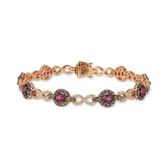 Raspberry Rhodolite® wrapped in Chocolate Diamonds® alternate with infinity links of Vanilla Diamonds® on this breathtaking rose gold bracelet from Le Vian.