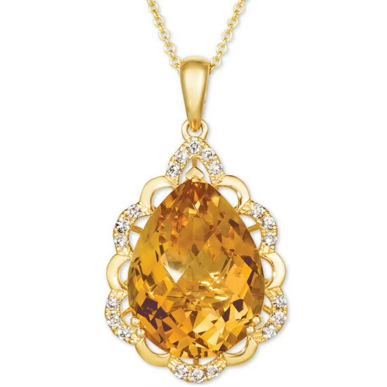 Enchanting scalloped edges set with Nude Diamondsโข bring a vintage-look to this gorgeous pear-cut Cinnamon Citrineยฎ pendant necklace designed by Le Vian.