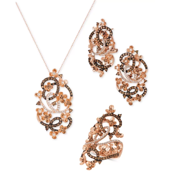 From Le Vian’s Crazy Collection comes this crazy-beautiful jewelry set. Each stunning piece is adorned with Chocolate Diamonds® and Nude Diamonds™ in a swirling, sparkling, floral design.