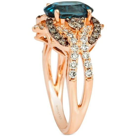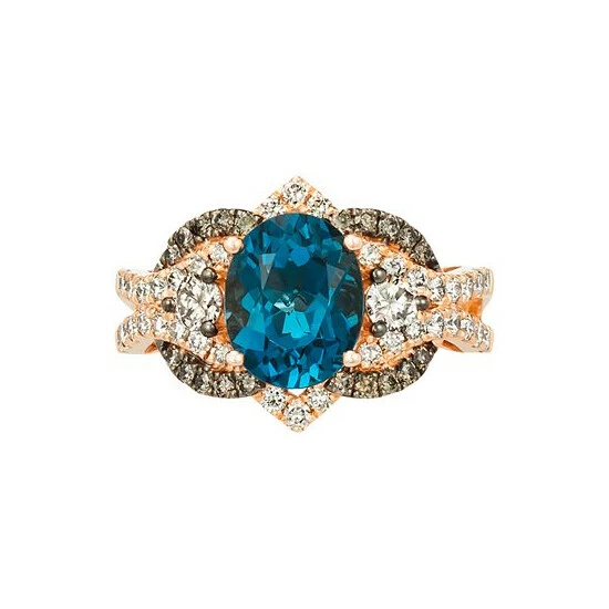 Indulge your sense of style adventure with this bold and beautiful Le Vian ring, set with an oval-cut Deep Sea Blue Topazโข set amidst sparkling Nude Diamondsโข and Chocolate Diamondsยฎ.