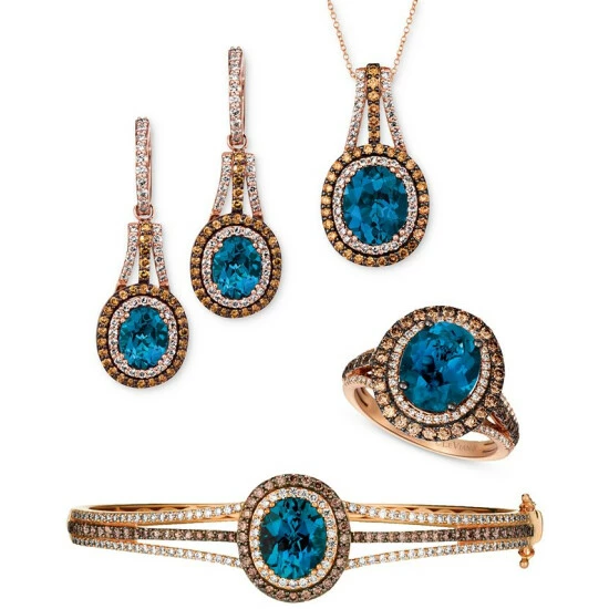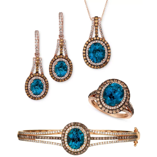 Step into a world of impossible elegance with this collection of jewelry from Le Vian. Each piece celebrates style with Deep Sea Blue Topazโข; Chocolate Diamondsยฎ and Nude Diamondsโข set in 14k rose gold.