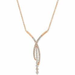 A breathtaking abstract design features round-shape light brown diamonds set in a curved crisscross with a dramatic center dangle in this statement necklace (1-5/8 ct. t.w.) by Le Vian.