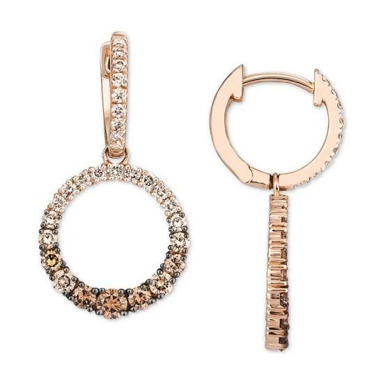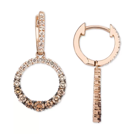 Unique and gorgeous ombré diamonds cast a beautiful glow on these dangle hoop drop earrings from Le Vian.