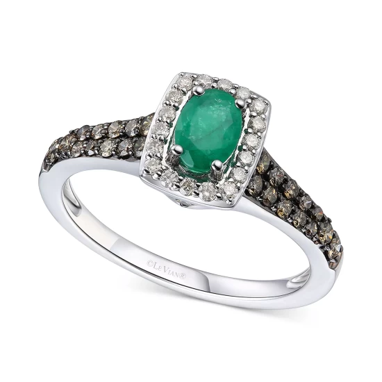 Le Vian celebrates the unique beauty of emerald in this gorgeous ring accented with Chocolate Diamonds® and Nude Diamonds™ in 14k white gold.