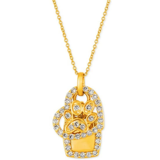 Honor Fido with this whimsical light brown round-shape Nude™ diamond heart and paw dog tag pendant necklace from the Le Vian “I Love Dogs” collection.