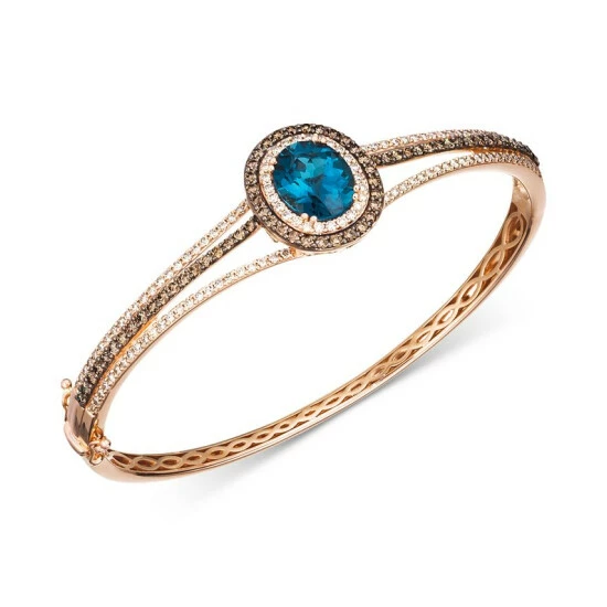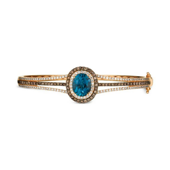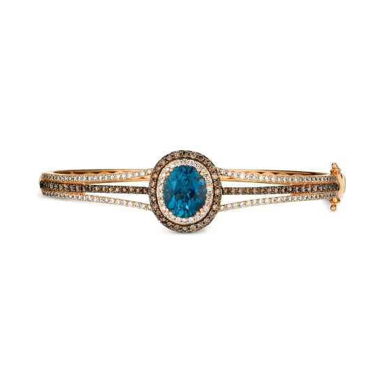 A dazzling oval-cut London Blue Topaz is set with glistening Chocolate Diamonds® and Nude Diamonds™ in this dramatic three row halo bangle bracelet from Le Vian.
