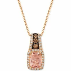 Le Vian blushes with beauty in this Peach Morganite™ pendant necklace with a Nude Diamond™ halo and Chocolate Diamond® accents.