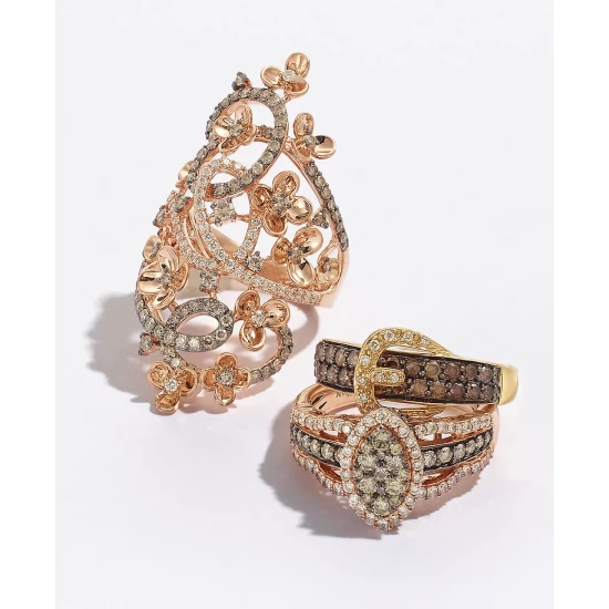 Head-turning elegance. This stunning wide statement ring from Le Vian is set with beautiful rows of Nude Diamondsโข and Chocolate Smoky Quartz, pulled together by an exquisite oval-shape Deep Sea Blue topazโข.