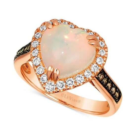 Vanilla Diamondsยฎ and Chocolate Diamondsยฎ enhance the mesmerizing charm of a heart-shaped Neopolitan Opalโข in this beautiful Le Vian ring.