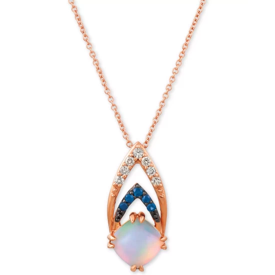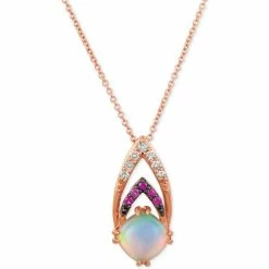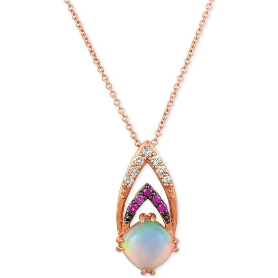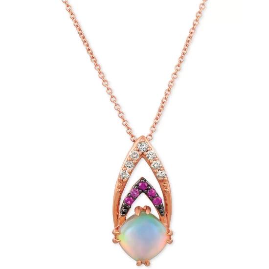 Modern and bold arch designs with Nude Diamonds and Passion Ruby accents cradle a luxurious Neopolital Opal in this unique pendant necklace from Le Vian.