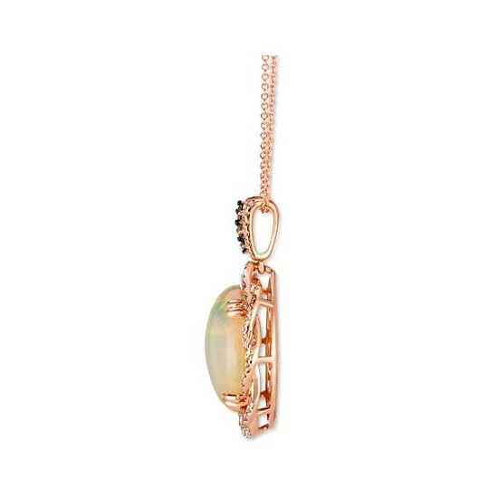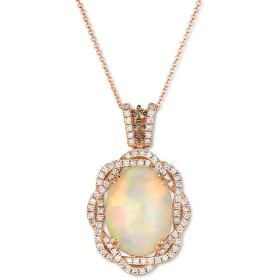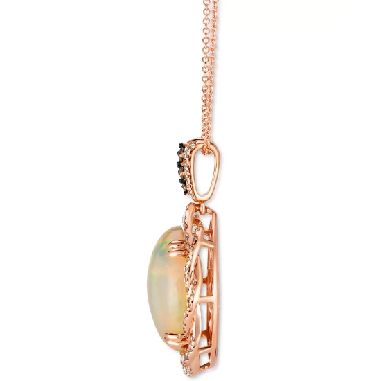 A braided halo of Nude Diamondsโข holds a fiery Neopolitan Opalโข in this Le Vian pendant necklace with Chocolate Diamondยฎ accent.