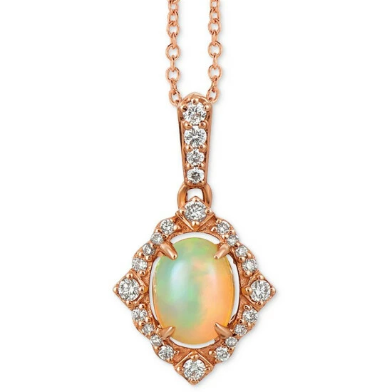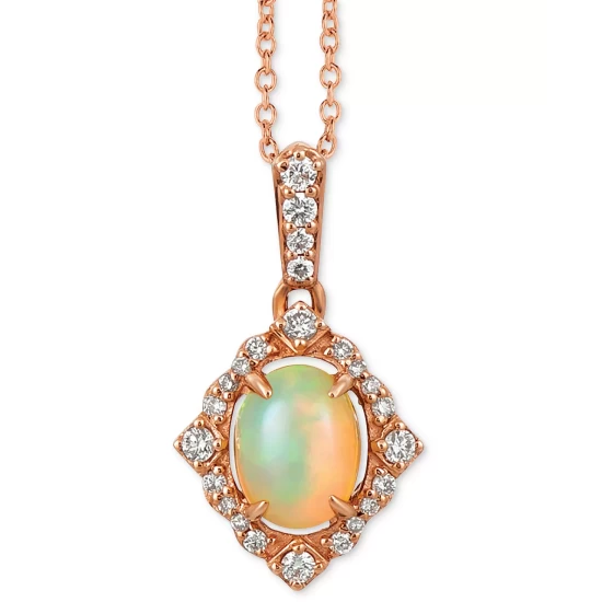 A Neopolitan Opal™ is framed by the glistening beauty of Vanilla Diamonds® in this delicate pendant necklace from Le Vian.
