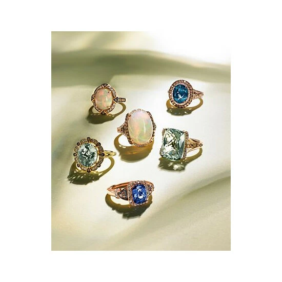 The fiery brilliance of an oval-shape opal is captured within a sparkling frame of brown and light brown round-shape diamonds in this eye-catching ring designed by Le Vian.