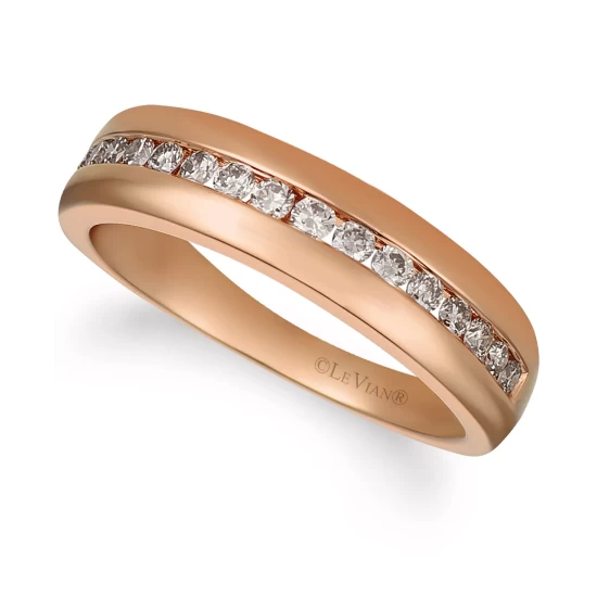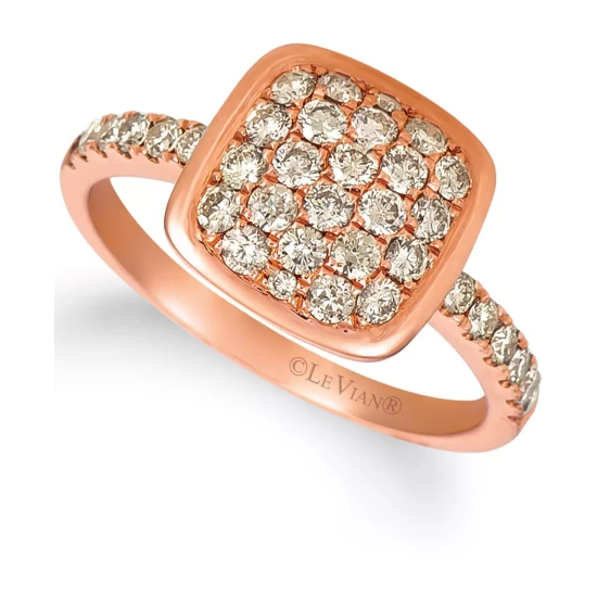 Le Vian dials up the enchantment with this gorgeous ring starring an iridescent oval-shape opal framed by round-shape light brown diamonds and accented with darker brown diamonds along the shank.