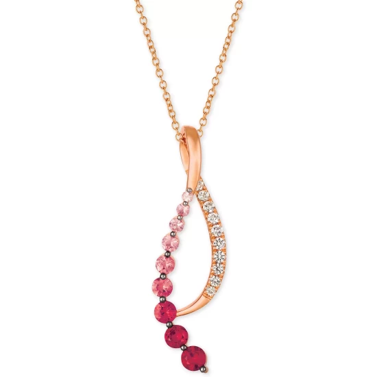 A swirly delight. A gradient of Passion Ruby gems to Bubblegum Pink Sapphires, alongside Vanilla Sapphires, gives this Le Vianยฎ pendant necklace a delectable touch.
