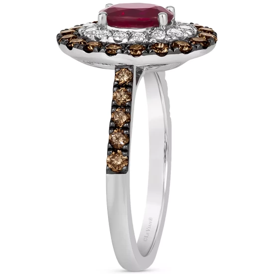 A timeless classic. This stunning ring from Le Vian shimmers with a vibrant oval-cut ruby set in a double halo of Nude Diamonds™ and Chocolate Diamonds®.