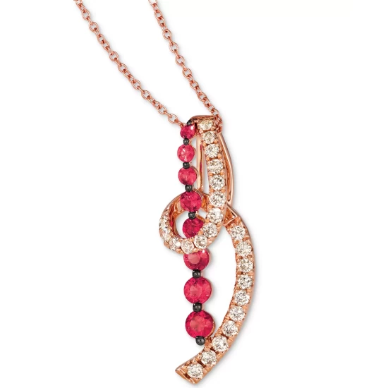 Le Vian makes it about the artistry with this incredible pendant necklace, set with a graduated line of Passion Rubies™ looped by a dazzling ribbon of Nude Diamonds™ in a rose gold design.
