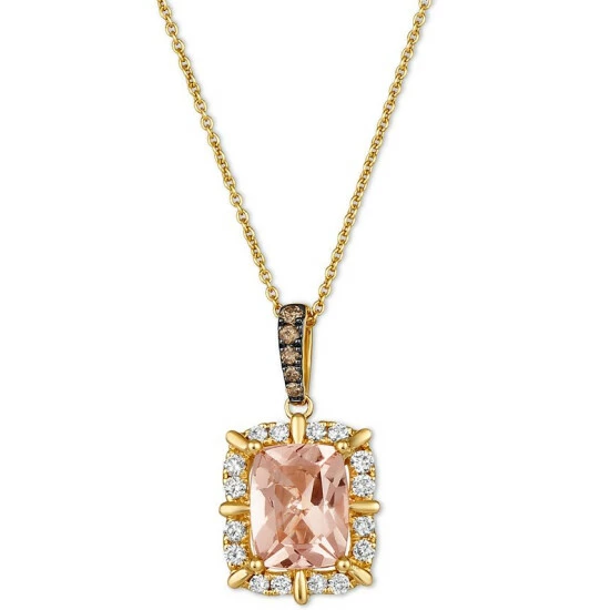 Give your look a beautiful blush with this Peach Morganiteโข, Nude Diamondโข and Chocolate Diamondยฎ pendant necklace from Le Vian.