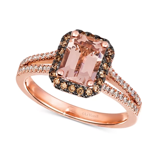 Elegance and vibrant sophistication come together in Le Vian®’s peach morganite and diamond statement ring with contrasting Nude and Chocolate Diamonds.