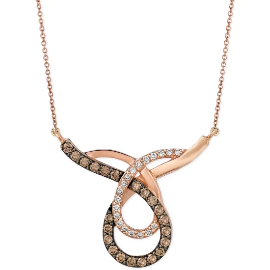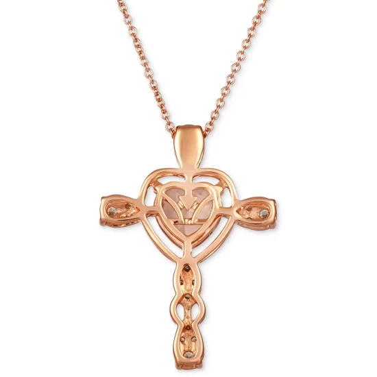 A graceful heart-shaped Peach Morganite™ is placed at the center of this Le Vian cross pendant necklace, accented with Chocolate Diamonds® and Nude Diamonds™ in 14k rose gold.