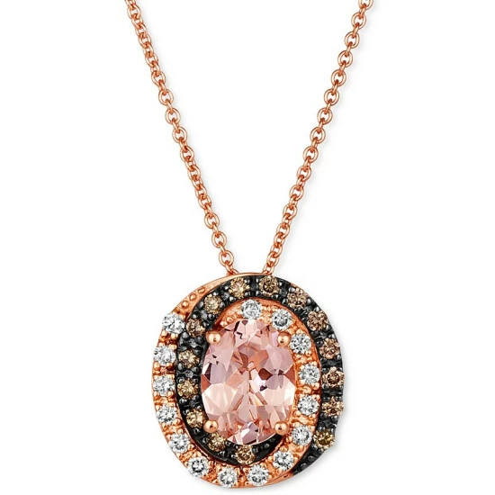 Swirls of Chocolate Diamonds® and Nude Diamonds™ wrap around a gorgeous Peach Morganite™ in this stunning rose gold pendant necklace from Le Vian.