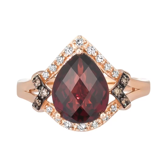 A bold and colorful Pomegranate Garnet™ brings crimson elegance to this stunning Le Vian ring, accented with Chocolate Diamonds® and Nude Diamonds™ in 14k rose gold.