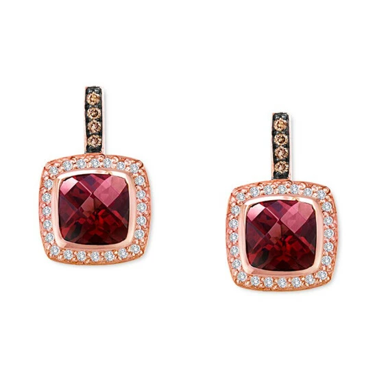 Le Vian® makes a bold beautiful statement in these gorgeous Raspberry Rhodolite®, Vanilla Diamond®, and Chocolate Diamond® halo drop earrings.
