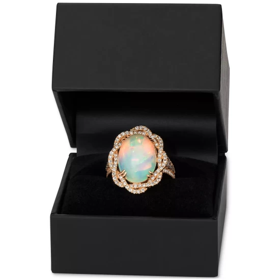 An intricate crossover design is set with Raspberry Rhodolites®, Chocolate Diamonds®, and Vanilla Diamonds® in this stunning Le Vian ring.
