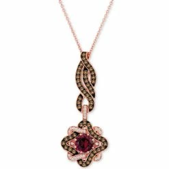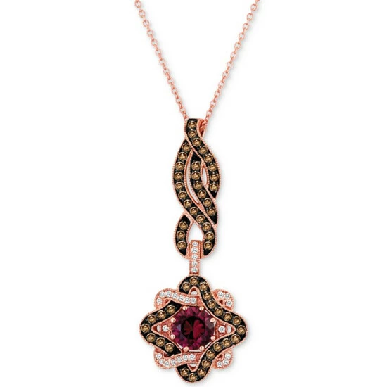 A twist of Chocolate Diamonds® leads the way to a dramatic star of Raspberry Rhodolite®, Vanilla Diamonds® and additional Chocolate Diamonds® on this rose gold pendant necklace from Le Vian.