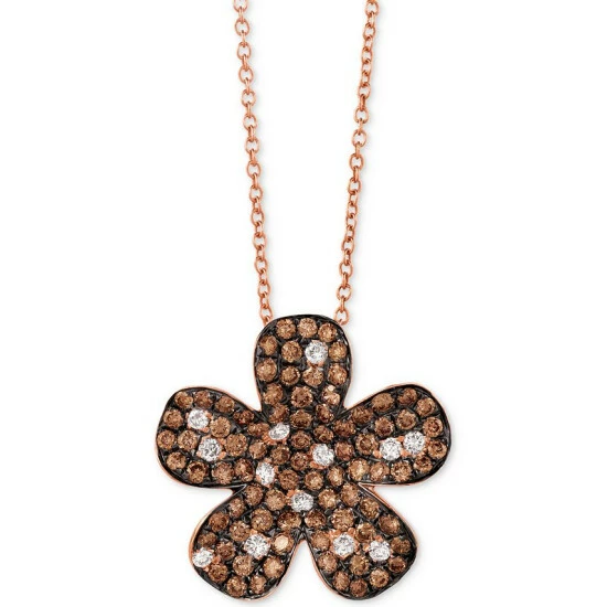 Whimsical with a touch of glam, this gorgeous flower pendant necklace (1-3/8 ct. t.w.) from Le Vian sparkles with round-shape brown diamond pavé highlighted by tiny random flecks of round-shape white diamonds.