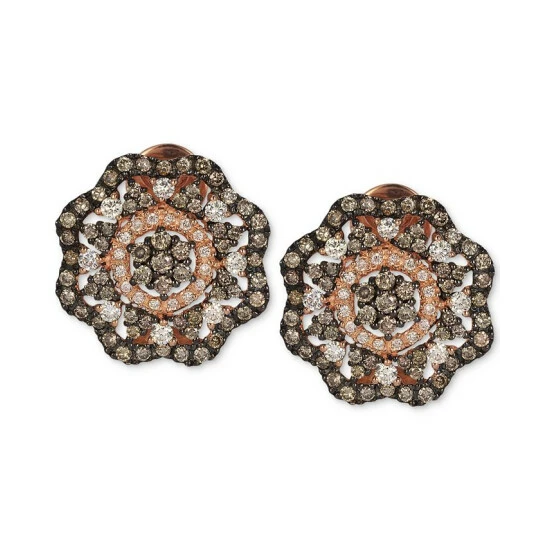 Bring her flowers she will treasure forever with these dazzling Le Vian stud earrings (1-5/8 ct. t.w.) with beautiful round-shape white and brown diamonds arranged in floral design.