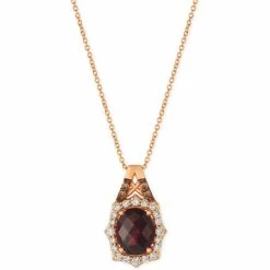 Artfully placed within a halo of sparkling round-shape white diamonds is a bold and vibrant oval-shape garnet in this captivating Le Vian pendant necklace, accented with a hint of brown diamonds.